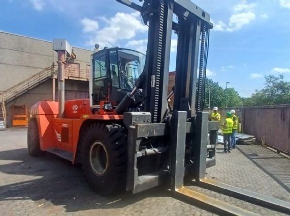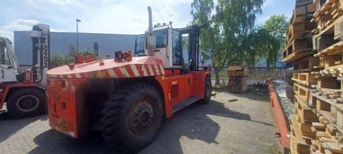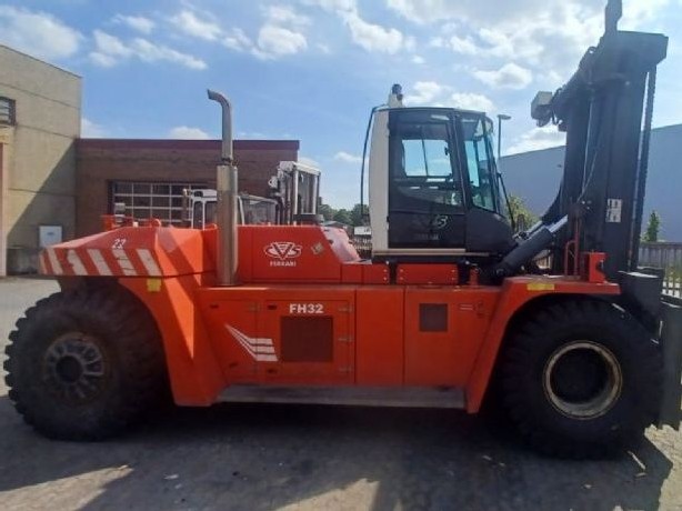 The CVS Ferrari FH32 is a heavy-duty diesel forklift designed for industrial and port operations. Equipped with a powerful Volvo engine and ZF transmission, it offers a lifting capacity of 32 tons and robust performance for container and cargo handling applications.