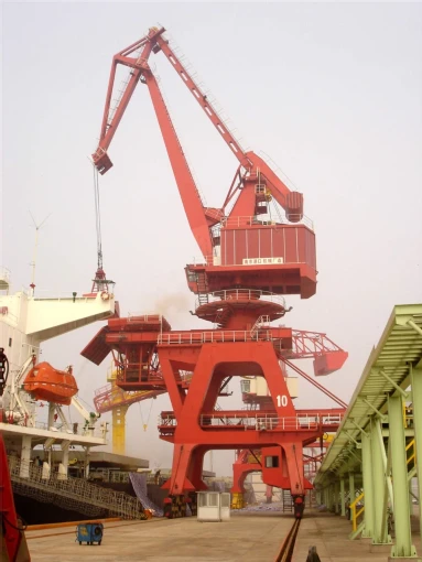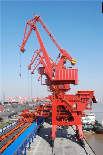 Heavy-duty 26 to 75 ton double boom portal crane for efficient bulk and container handling.