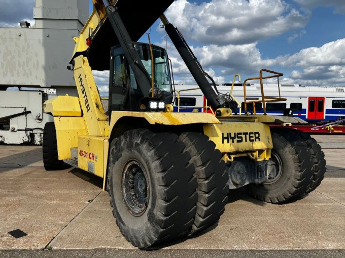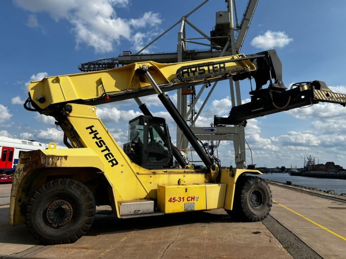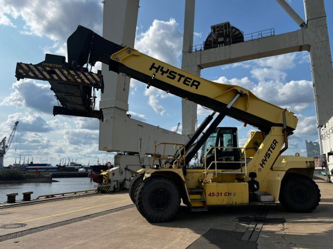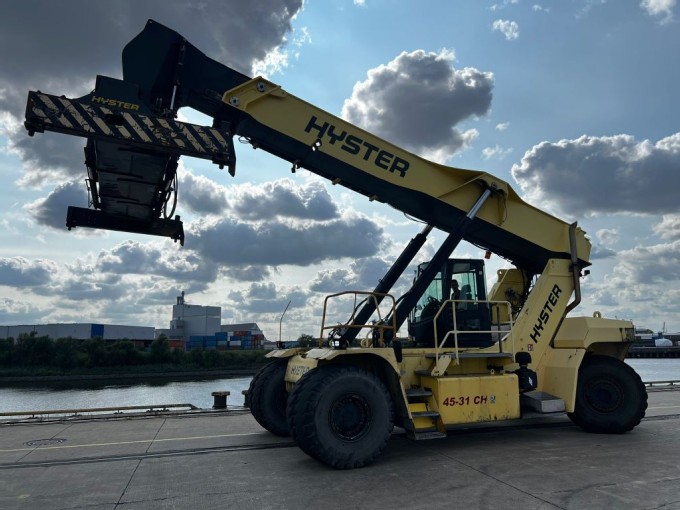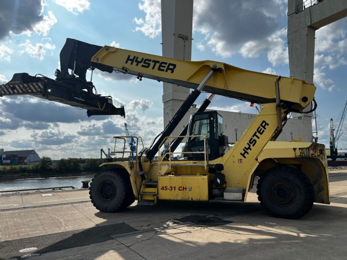 The Hyster RS45-31 is a heavy-duty reachstacker designed for port and terminal operations. With a lifting capacity of 45 tons and telescopic mast, it delivers excellent performance, visibility, and reliability for container handling and stacking operations.