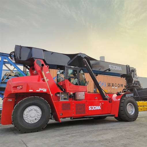 Fully-electric 45T reachstacker designed for terminal operations. This SOCMA HNRS4531-5E model combines long endurance (up to 10 hours), advanced remote diagnostics, safety tech, and ergonomic cabin controls. Built for daily port and intermodal use with intelligent systems for battery, stability, and efficient container handling.