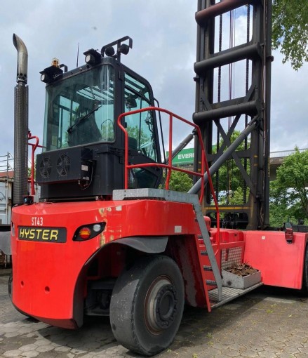 This used Hyster H10XM-ECD8 container forklift offers a 10-ton capacity with Duplex mast and impressive 18,850 mm lift height. Powered by a Cummins QSB6.7 Tier 4 diesel engine and ZF automatic transmission, it ensures reliability for container handling and port operations. Fully functional and in excellent technical and optical condition.