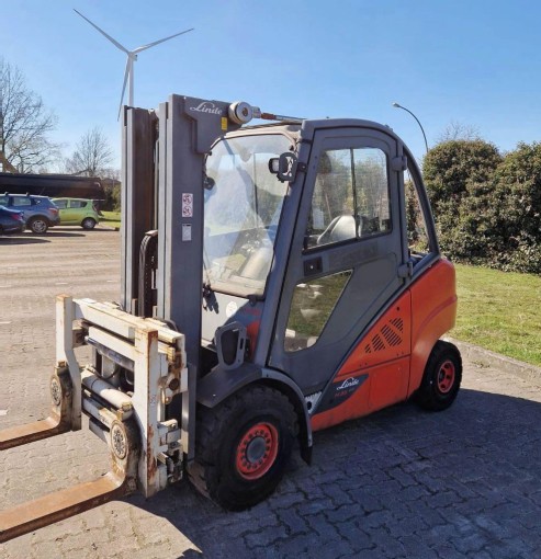 This used Linde H35D-02 EVO diesel forklift offers a 3.5-ton capacity with a Triplex mast and 4,655 mm lift height—ideal for terminal, warehouse, and yard operations. Low operating hours and very good overall condition.