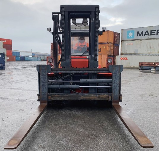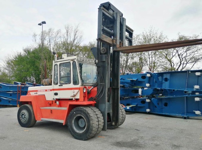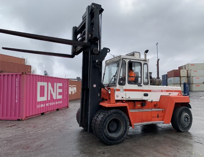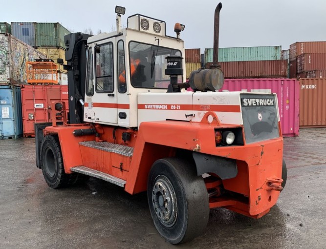 This used Svetruck 13.6-120-32 heavy-duty diesel forklift offers 13.6-ton capacity with a Duplex mast and 3,000 mm lift height. Volvo TWD630VE engine with Clark HR28000 transmission delivers reliable performance for terminal and industrial yard operations. Overall condition rated good and ready for work.