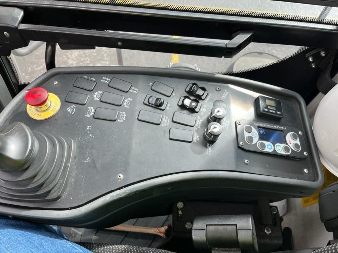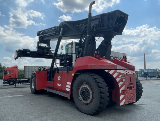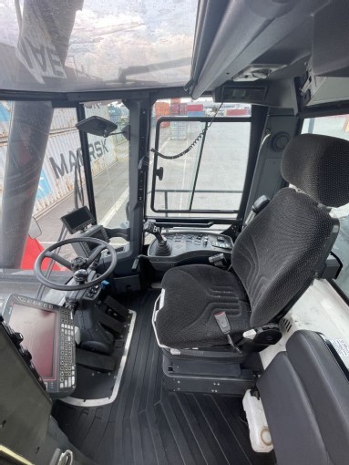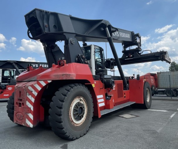 Used CVS Ferrari F500RS6 S full container reachstacker. Equipped with hydraulic support jacks for increased lifting capacity, hydraulically sliding cabin, and central greasing system for chassis, boom, and spreader. Features automatic spreader adjustment (20–40ft), electronic air conditioning, larger display, and rear-view camera. In very good technical and optical condition — fully operational and ready for use.